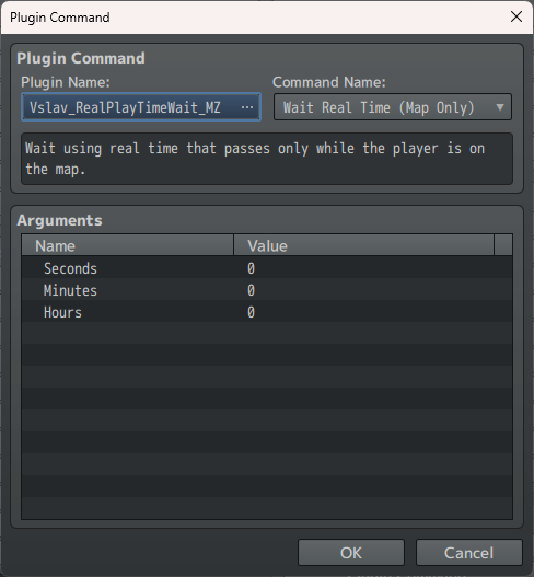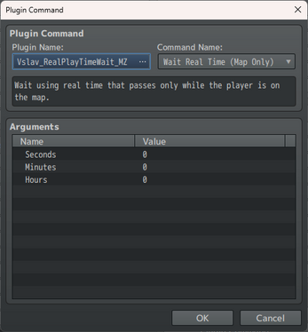 This is a timer plugin for RPG Maker that counts real time — seconds, minutes, and hours — and allows you to switch event pages not instantly, but after a specified amount of time.